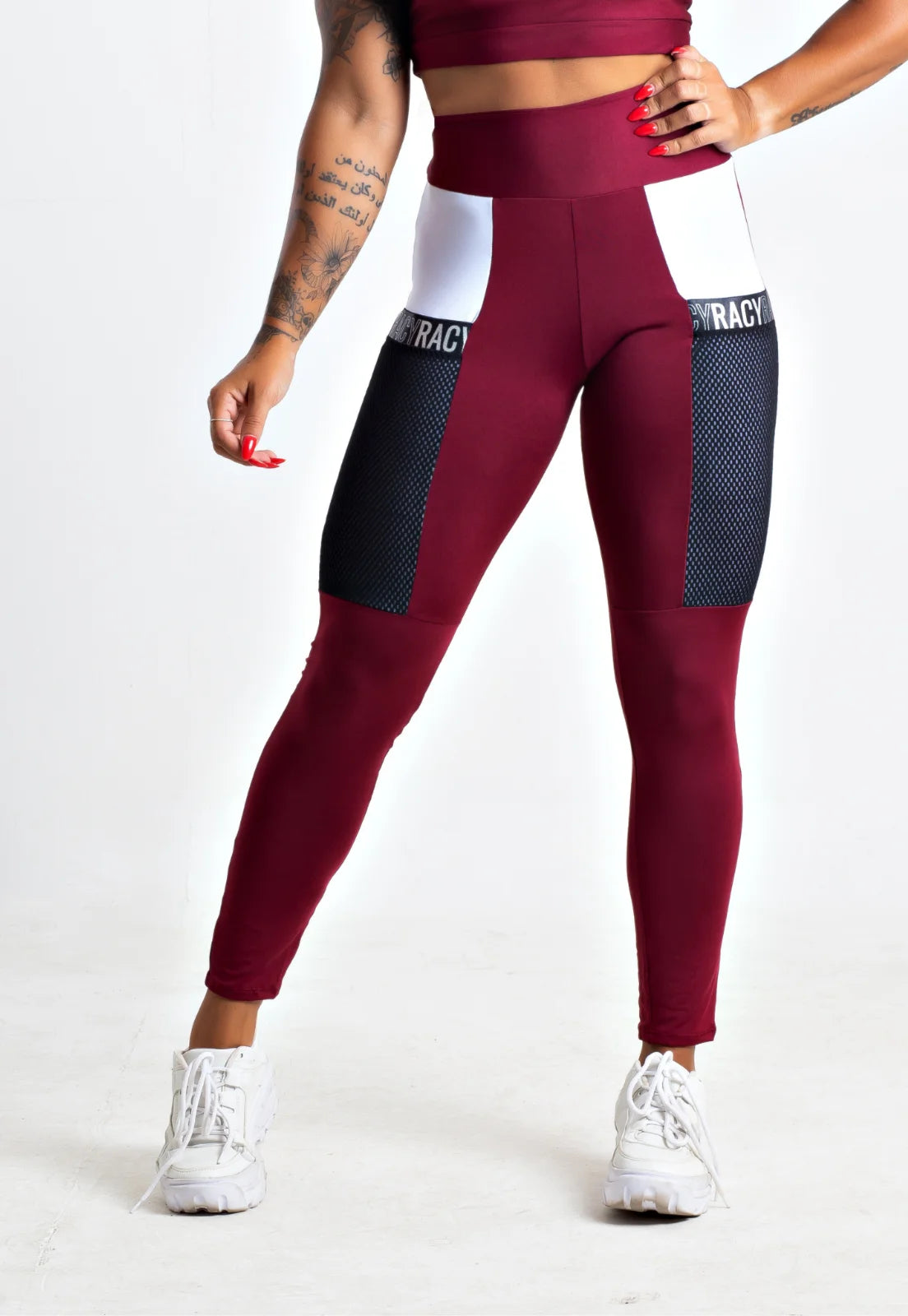 Calça Legging Cintura Alta Marsala com Bolso e Elástico calcas-fitness