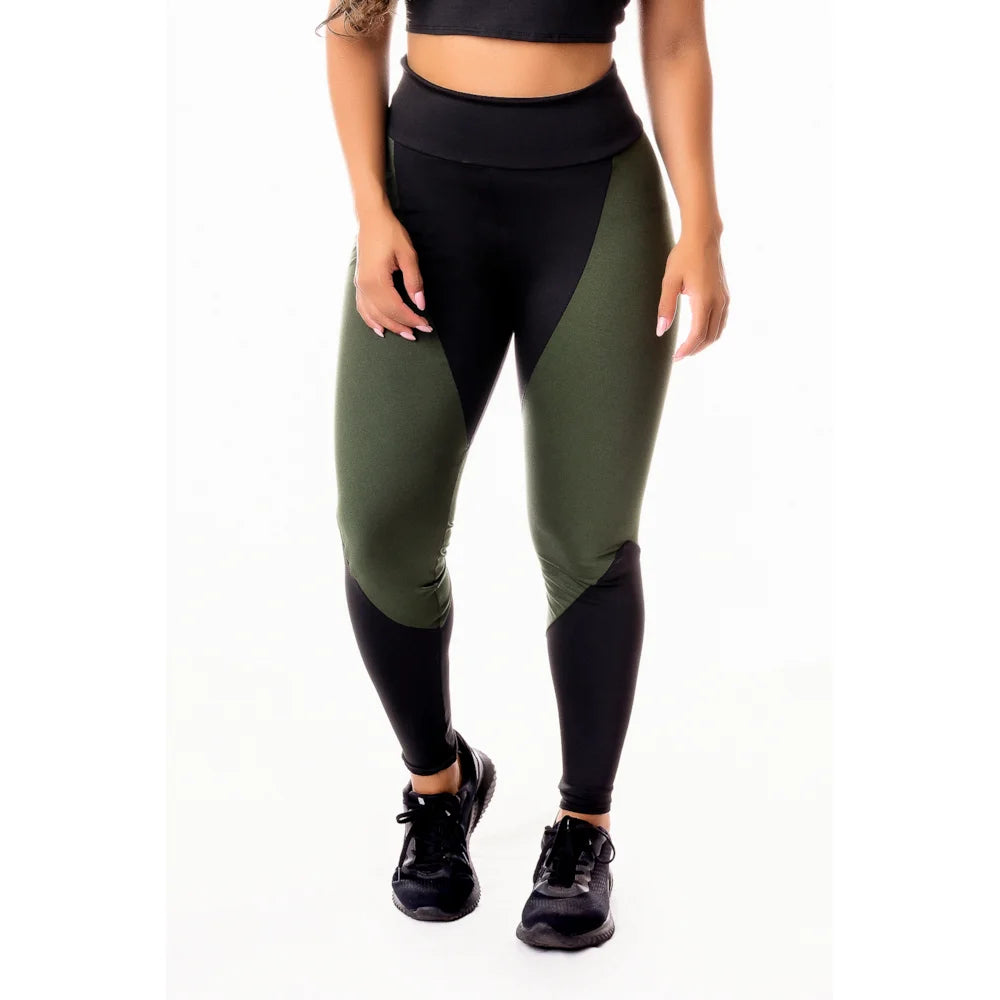 Calça Legging Fitness Verde Militar com Preto da Adore Fitness