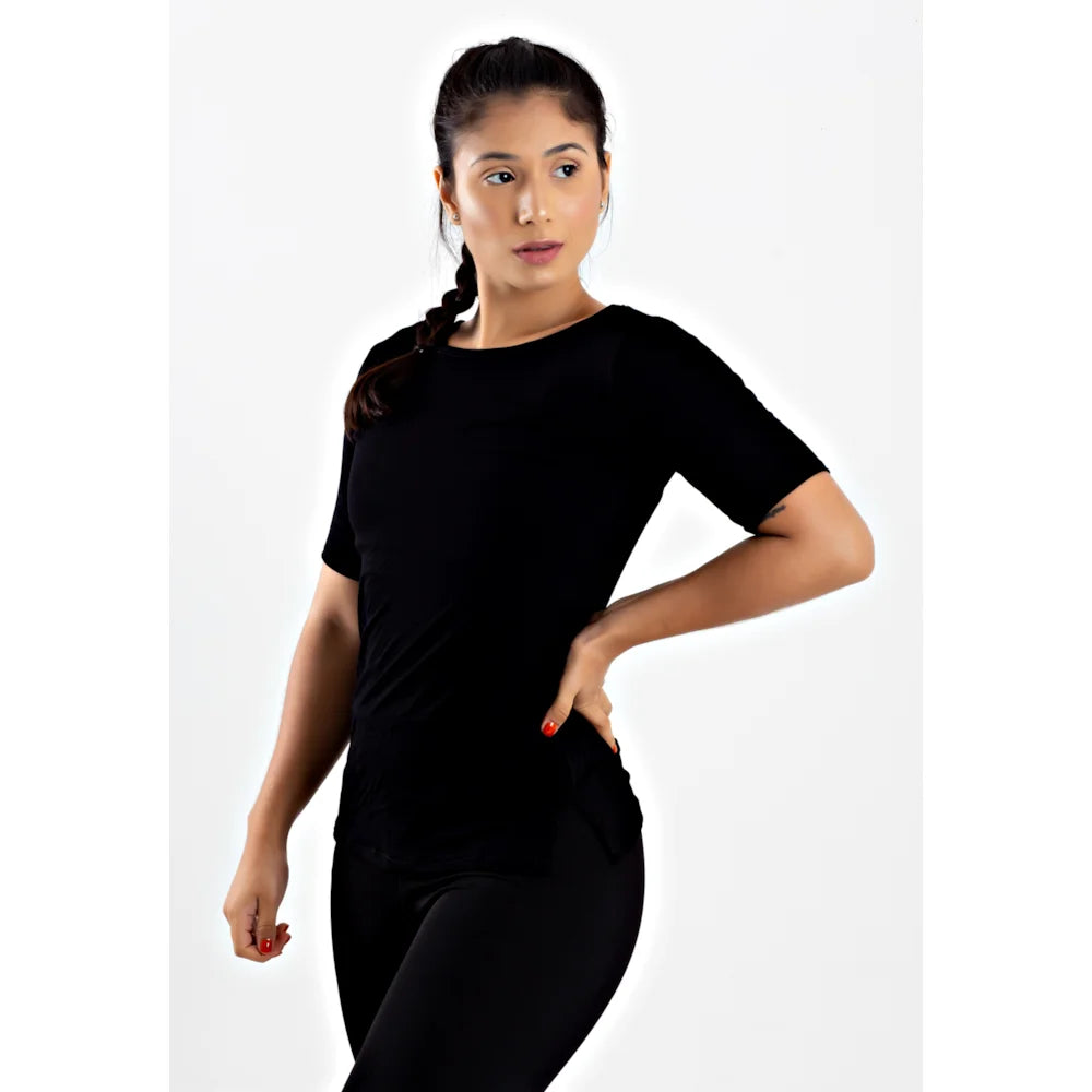 Blusa Fitness Tela Manga Curta Preto