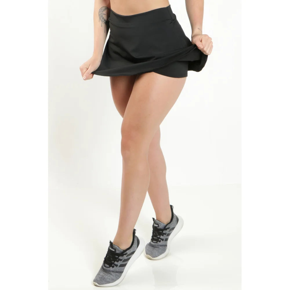 Short Saia Fitness Cintura Alta Preto