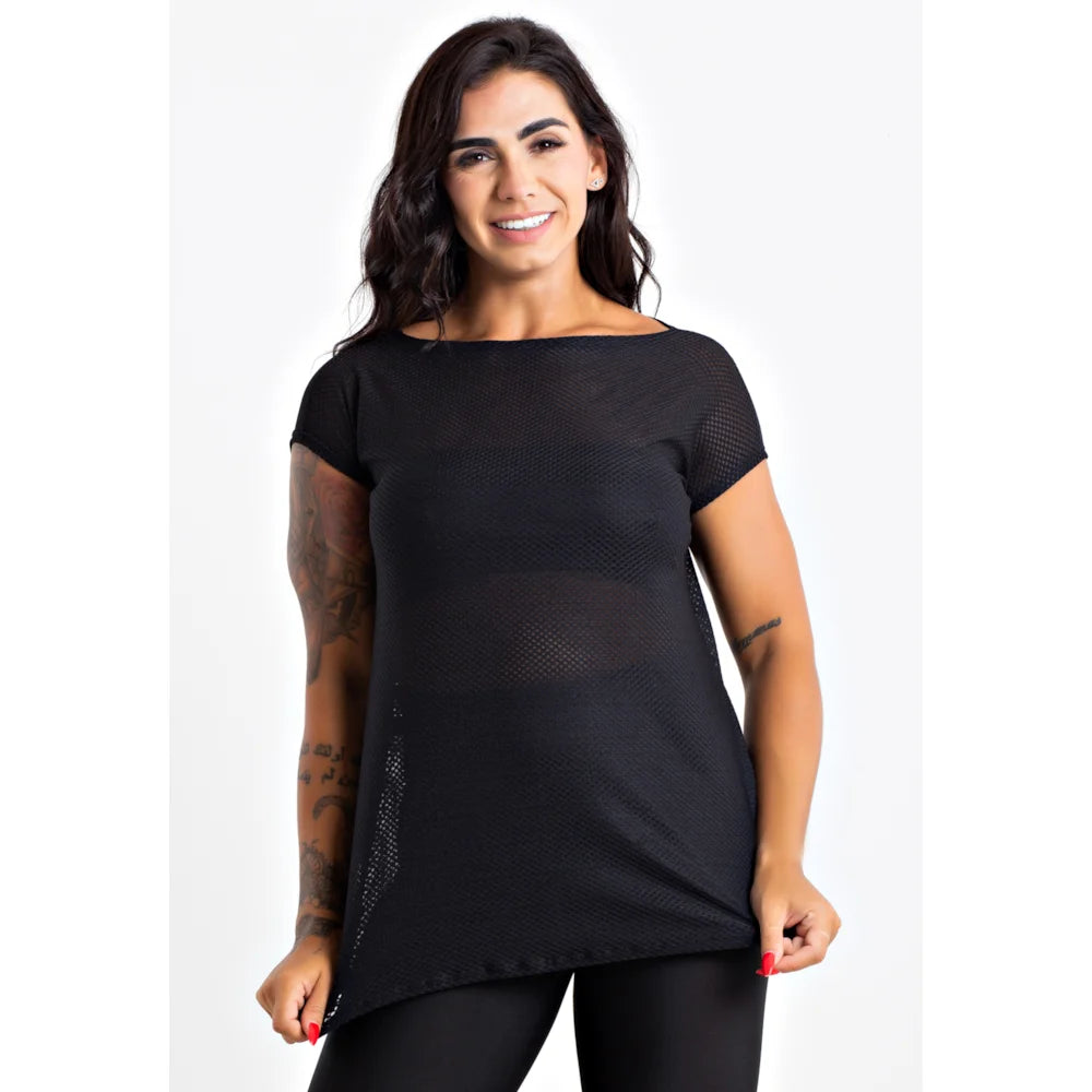 Blusa Feminina Fitness Transparente Dry Preto