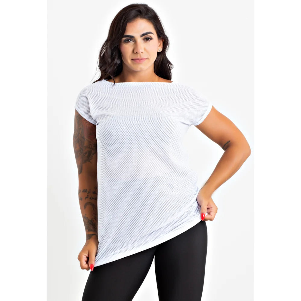 Blusa Fitness Tela Manga Curta Branco